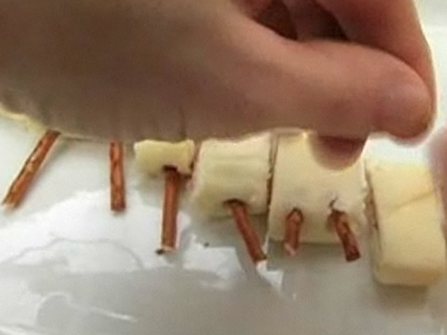 Вкусные рулетики из тонких сладких блинчиков.Состав:блины — 4 штуки;сыр — 4 штуки;сырные палочки — 20 штук;ветчина, мягкий сыр.